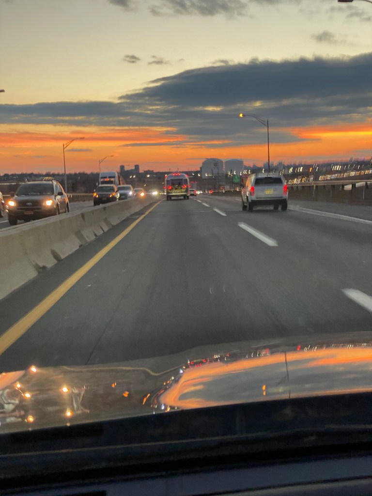 After a long good bye, we started the drive south. This time, we had the Subaru and the truck and trailer combo and we can’t spell each other so we planned shorter drives. We knew we wanted to get out of the metro area, so we decided 3-4 hours would be the first day. We got a pretty good sunset out of NYC.