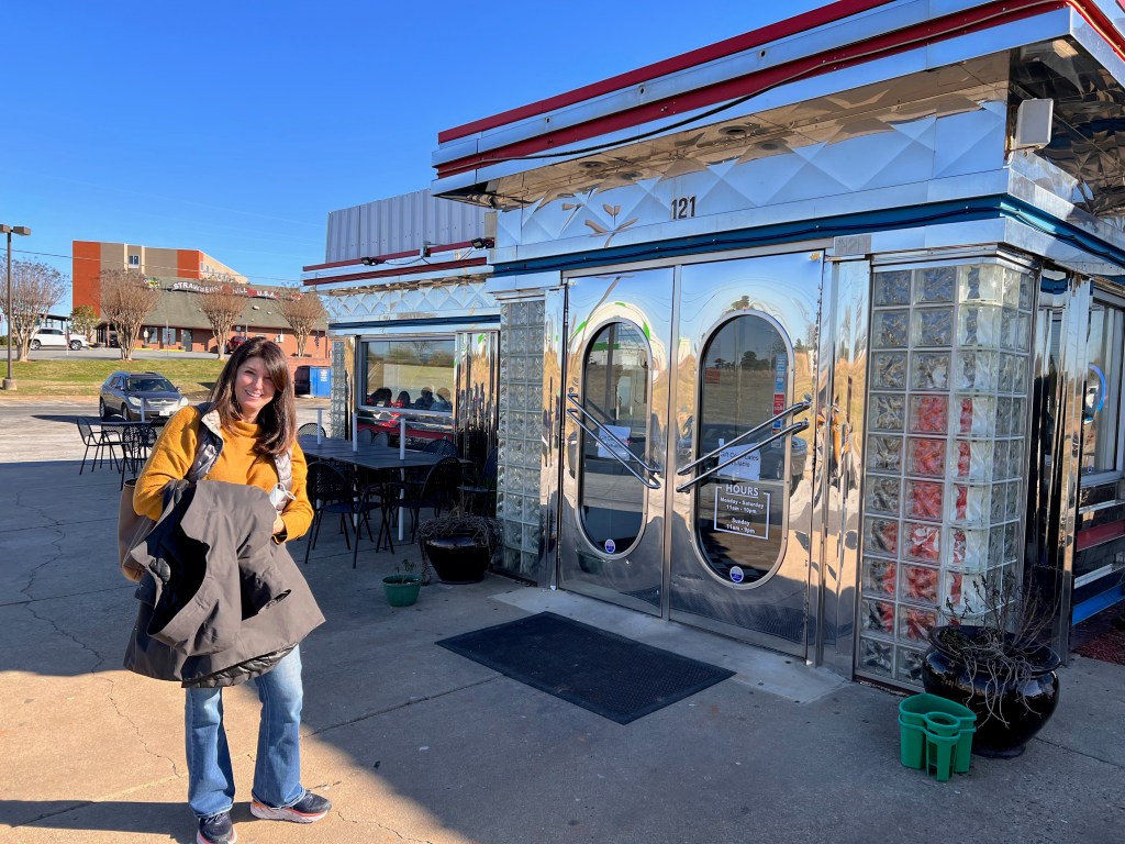 To celebrate we went to a nearby diner. Well, it looked like a diner – enveloped in chrome with pressed diamond patterns and long like you would expect on Long Island. It was disconcerting to go into a bright, shine-y diner and not find Greek salads, breakfast all day and some wizened old waitress taking your order.