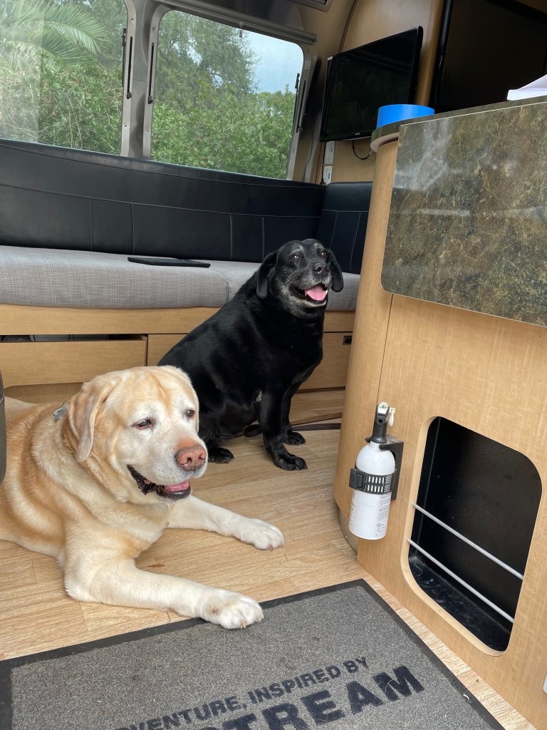 When we got to some warm place that smelled like the beach (I think they said Beaufort, South Carolina?), they walked around with some new people. We even smelled that they had dogs! I bet we could have run on the beach and gotten nice and sandy. For some reason, we weren’t allowed to play with the other canines. The parents hooked us up outside the silver thing for a while, like they do when we’re going to camp. Then they put us in the truck and LEFT the silver thing! Do you think they just forgot? Maybe they’ll get back to it later. I heard the new dogs liked our fun place.