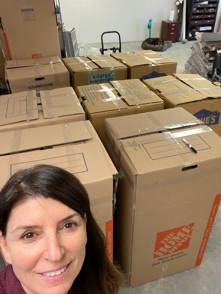 Didn’t we just get finished packing and unpacking??? On Monday, David moved his office, not far and still in Asheville, but it had to be done. As the property management office, it holds all the Christmas greenery for the shopping center. My mission was to wrestle a 20x 15 x 5 foot tall pile of fake flora into 10 wardrobe boxes. I won. Did you ever doubt me?