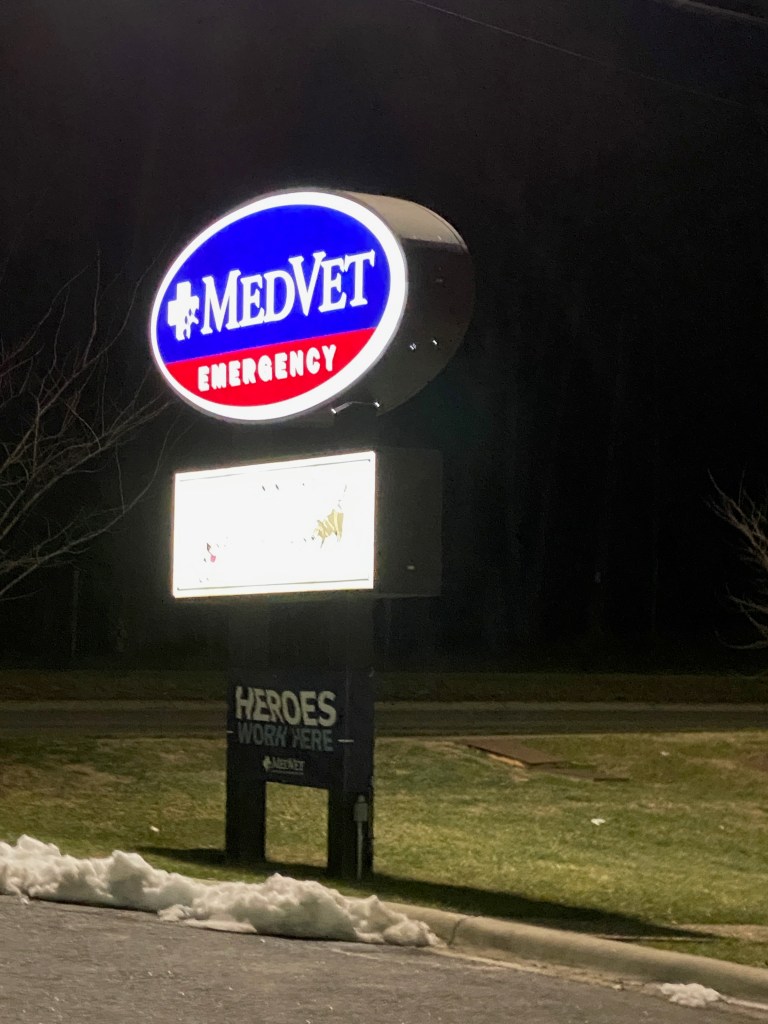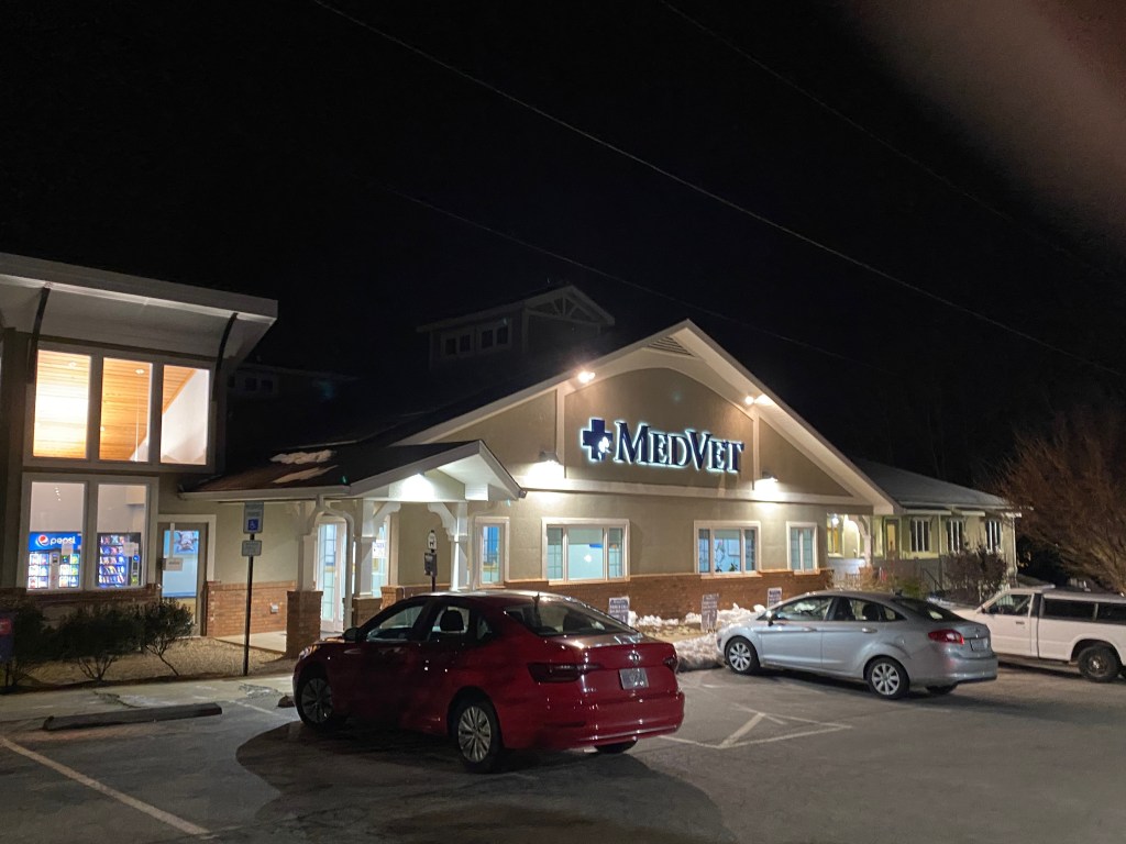 That evening, I started making dinner and went to check on the dogs. Then I saw it – Rey happily on the bed – with an empty masticated pill bottle! I examined the punctured, chewed up bottle and the cottonball that was next to it. She consumed a full bottle of Rimadyl which is like Advil for dogs. David had just taken her out to play within the past two hours so this was fresh. I called the vet recommended by a neighbor but they were already closed. The answering machine referred patients to MedVet, a national chain of 24 hour emergency veterinarian hospitals, for afterhours emergencies. This more than qualified.
