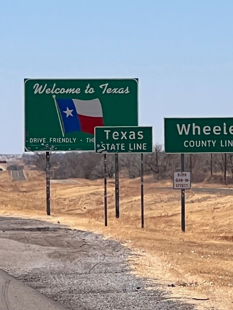 David drove for a few hours today and we passed Amarillo (he doesn’t remember it) and entered New Mexico. The topography changes again from ocean flat to flat with some hills, more mesas that bleed into the ocean bottom that must have been this part of the world in previous millenia. It’s beautiful and wild and amazing. I could wax poetic, but I’d rather get this blog posted. I’m sure I’ll have so much more to write tomorrow.