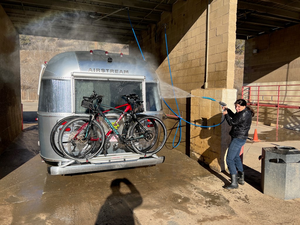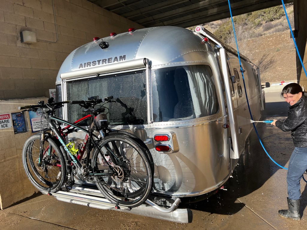 The next couple of days, David had tremendous work and I caught up on emails. We’re so grateful David’s AT&T hotspot is working well. We washed the truck and Airstream in the only car wash in town with the turning radius we required. The rig is so salty from driving across the country, it probably needs two washes to get clean. I got a lot of laundry done and thoroughly cleaned the inside of Airstream in anticipation of the arrival of (drum roll please) — Rachel and her fiancé Madison. They came for my birthday!!!
