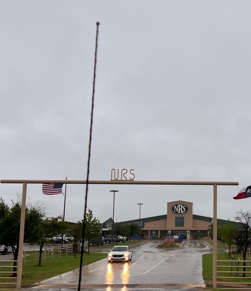 We expected clouds today. The sky changed from blue to gray. But then, the Weinstein reputation as rainmakers came through and we got a deluge of rain. It was raining buckets when we reached our Harvest Host destination: NRS Supply store and Arena.