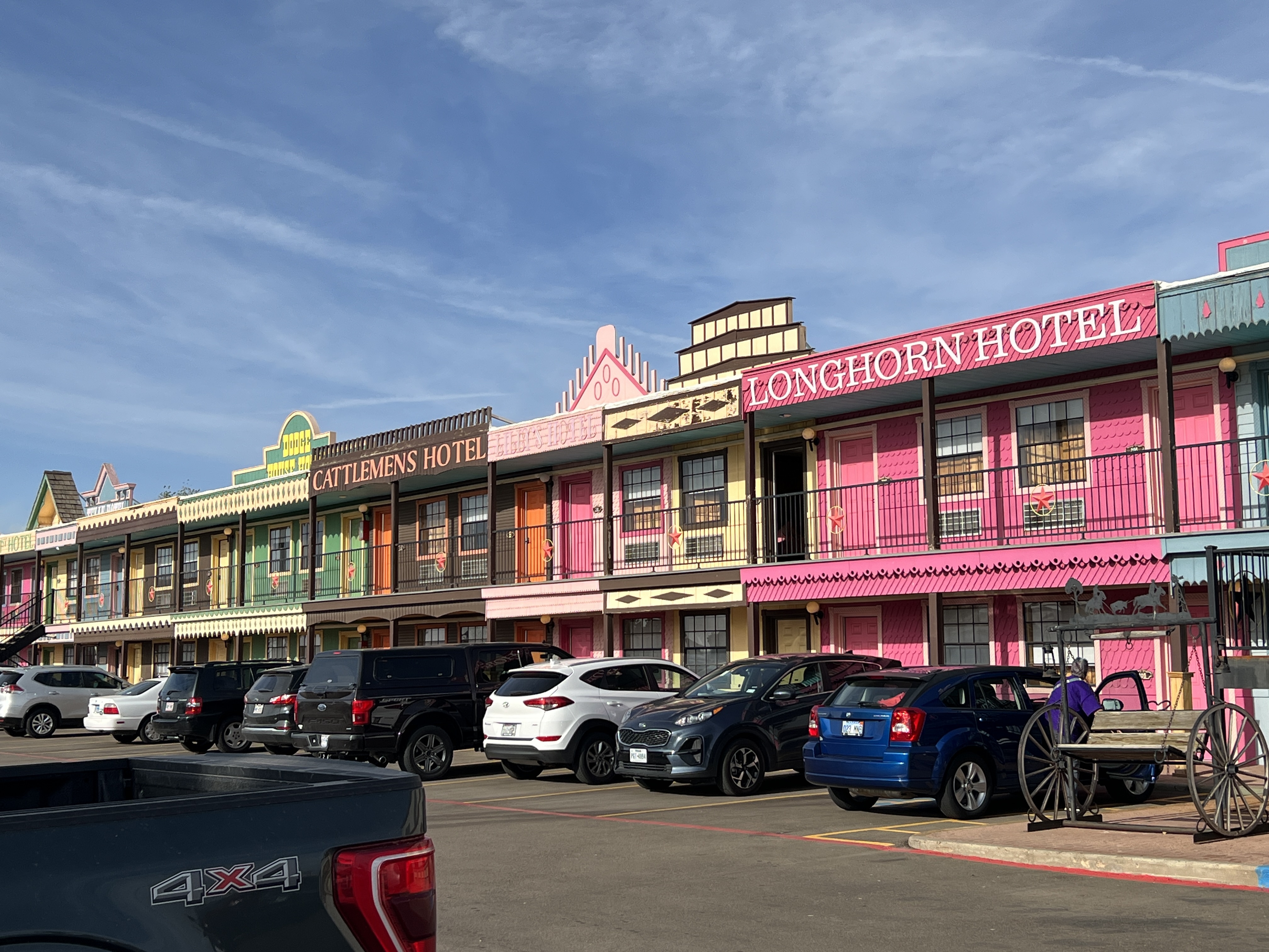 Anyway, NRS is the largest cowboy store I’ve ever seen, with ropes for wrangling cattle; hundreds of saddles; a section for cowboy boots that was bigger than my first, second and third apartments combined; and more cowboy hats than the cast of Yellowstone could wear if they tried on a different one every day for 3 years. Not kidding. There were things I’d never seen before, like plastic steers on sleds and wheels for roping practice. Do I have pictures of this? No. Why not? Because an hour before we got there, they lost electricity. Everything was dark. They didn’t even let us in for 15 minutes and only allowed limited shopping because they couldn’t process credit cards. There was a mini museum for Trevor Brazile, a cowboy who has won more saddles and buckles since 2002 than he has a right, and they were all on display. Amazing. You’ll have to take my word for it, it was a Texas sized cowboy store.