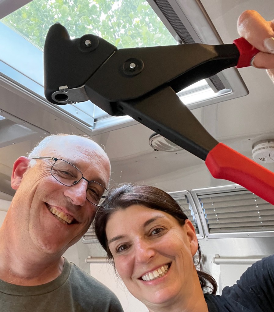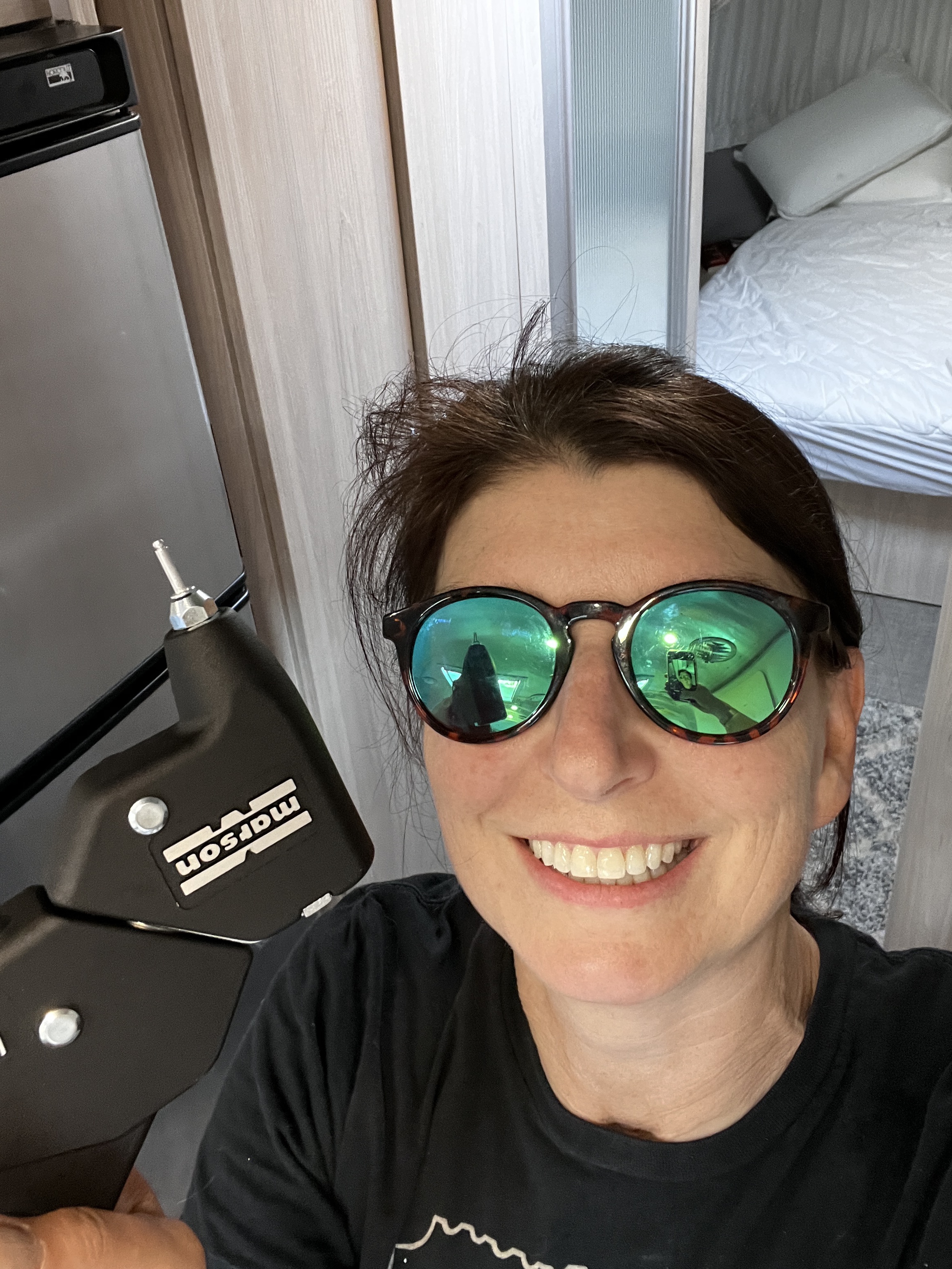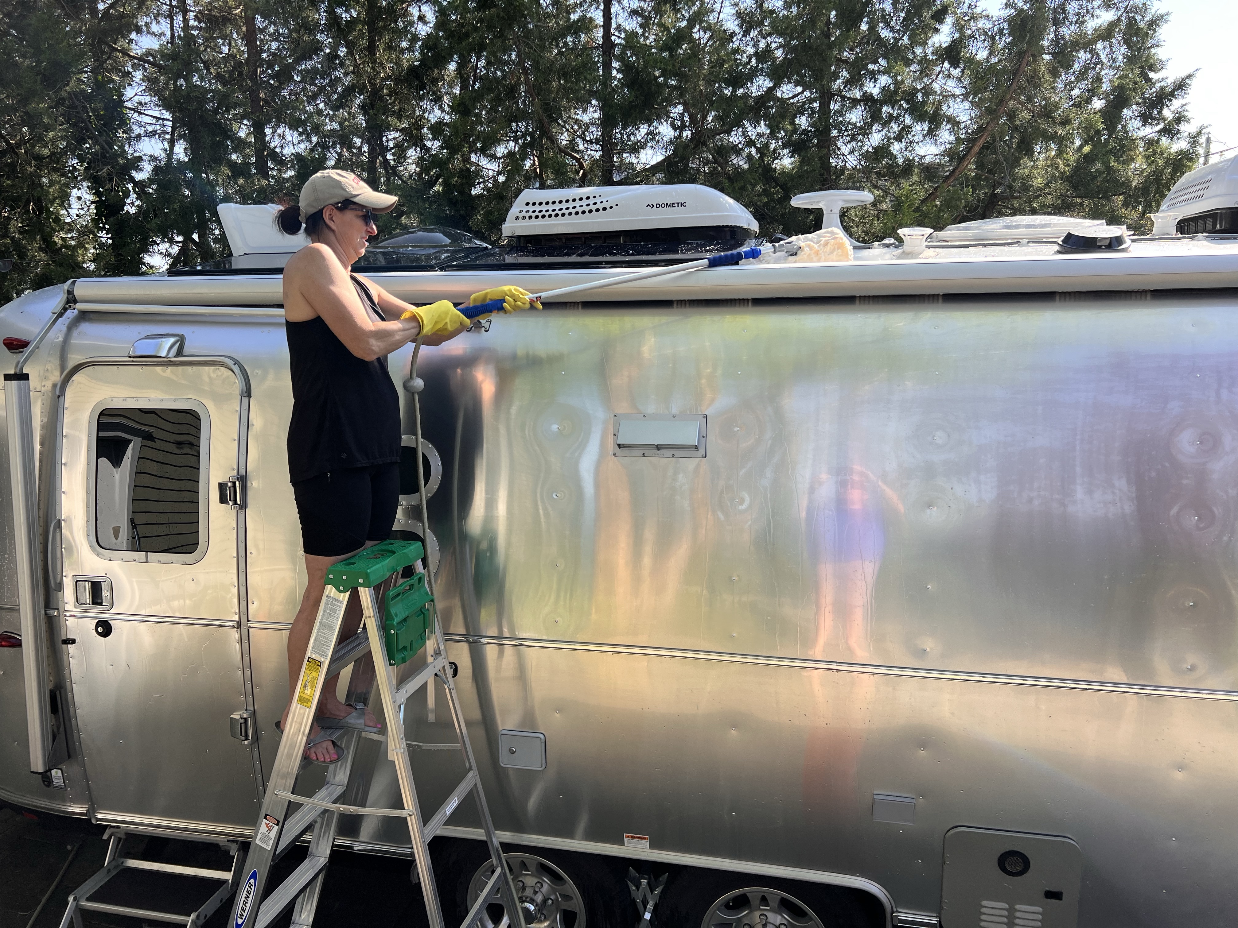 We managed to take a bike ride one afternoon. David put on a brave face but I think his hand is still hurting tremendously. Trying to do anything on the roof of the Airstream would have been a mistake. We did manage to get a couple of projects done. I was so excited that we were able to install a new outdoor shower, especially because we had been carrying around the box and having it clutter up Airstream for three months.