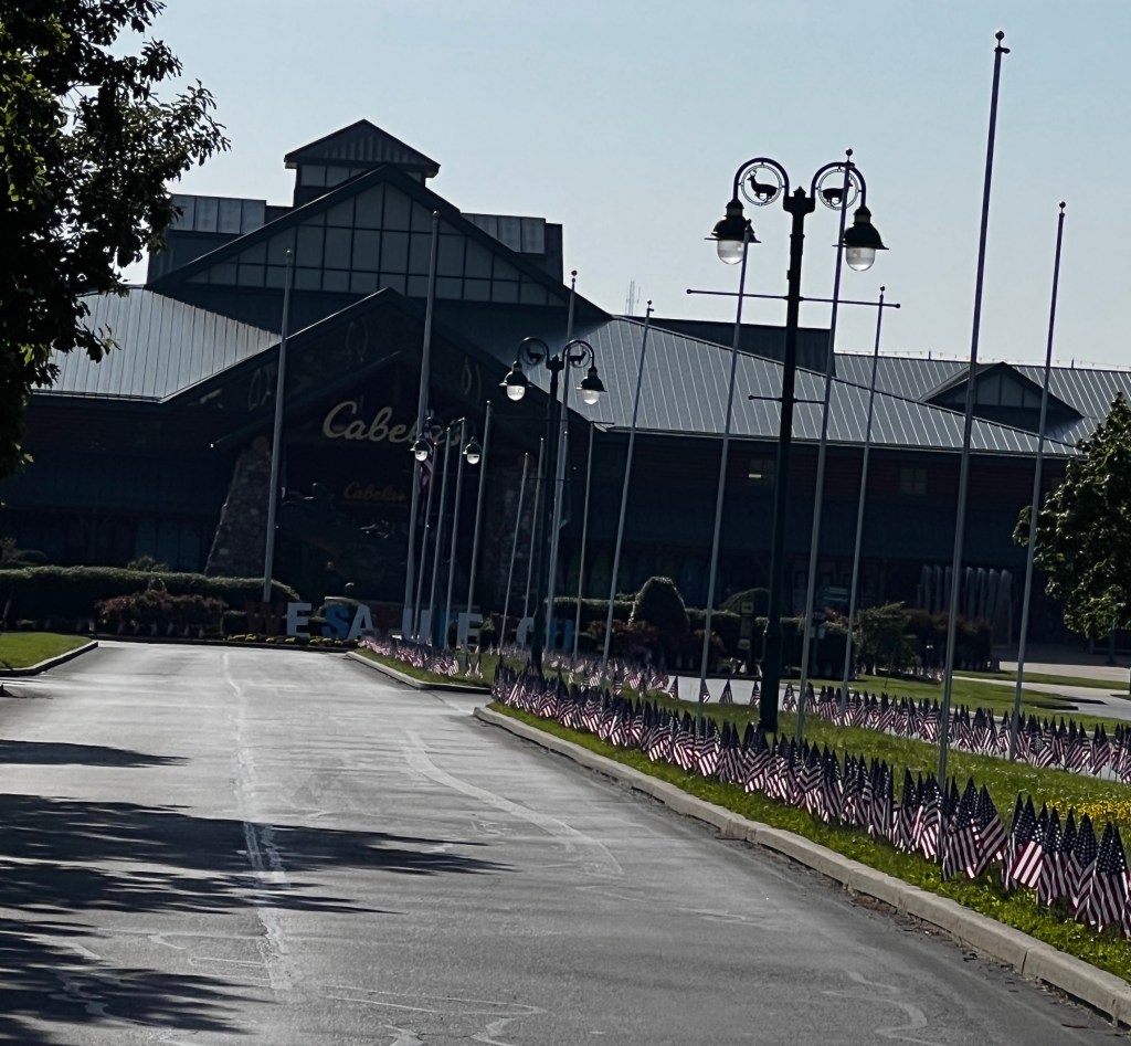 On Sunday, we left around 3 and drove to Harrisburg. Just getting out of the NY Metro area was all we could hope for – potholes the size of cars that made rivets pop and everything fly out of cabinets. We stayed overnight at a Cabelas where they offer free overnight parking to RVers. They even have a corral if you bring your horses.