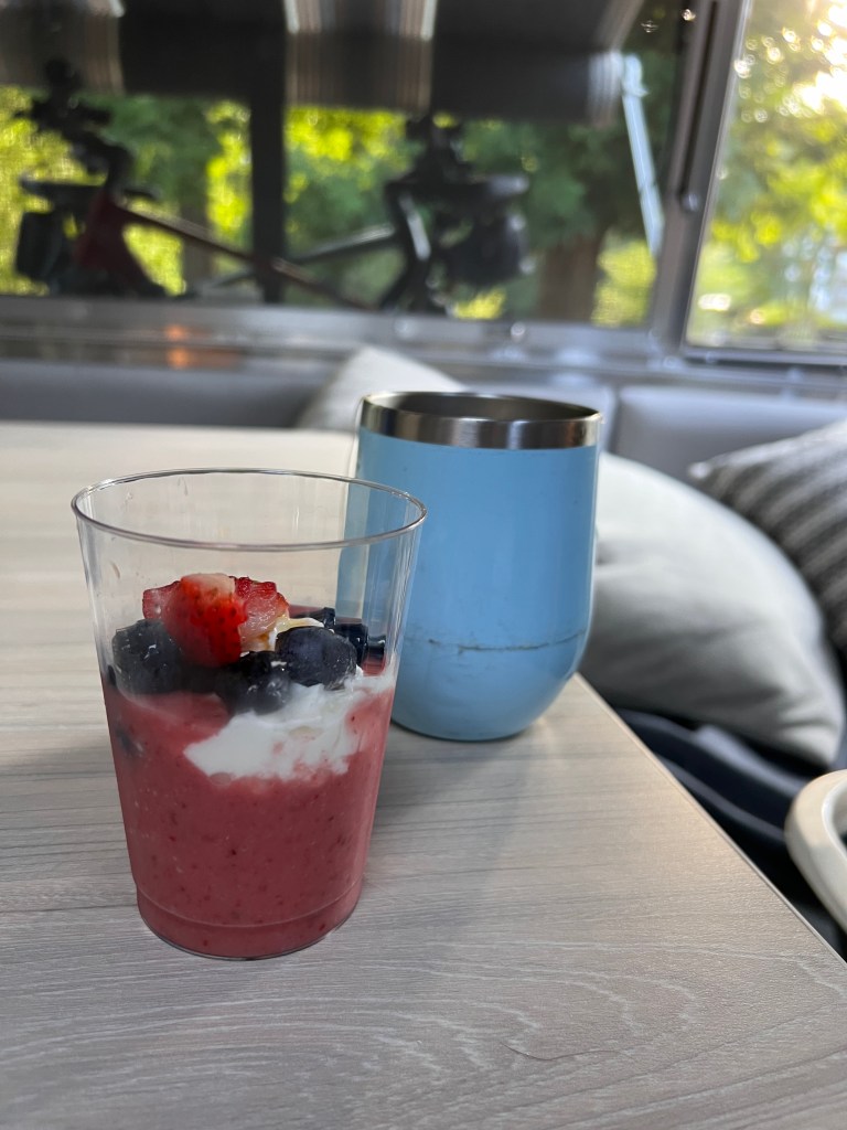 We stayed in the Airstream for about a week at the farm. Fourth of July came and went without much fanfare but a red, white and blue smoothie and some movies to celebrate. Luckily, we had stocked the refrigerator with fruit and food. And we had plenty of dry goods as well. That did not stop my mom from being a lifesaver. She delivered dinner to our door as well as medicine (we had some but needed things like throat numbing lozenges). When we told her the antiviral left a taste in your mouth like you were sucking on an iron railing, she brought Jolly Ranchers and Werther’s caramels. She and Brianna seemed to know we needed ice cream and brought that by on those super hot days.