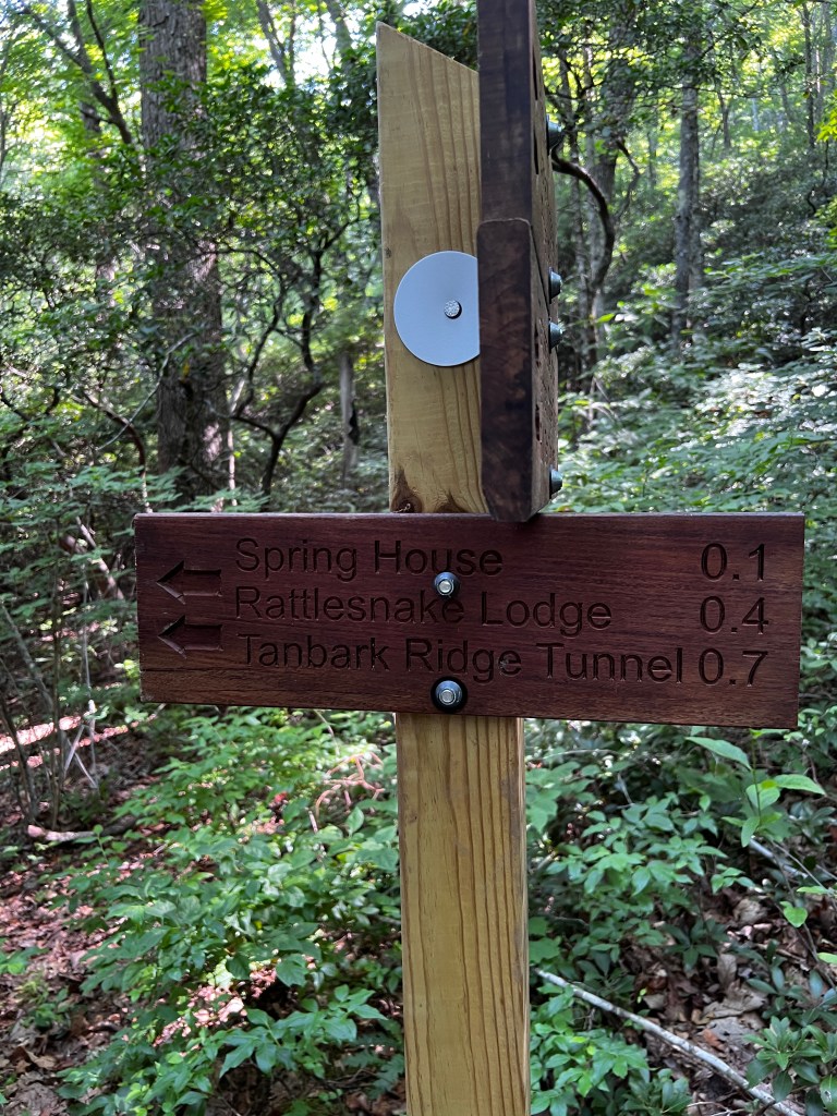 When I suggested to David that we take a hike last Sunday, he jumped on the chance. We drove up the Blue Ridge Parkway to get to the trailhead for Rattlesnake Lodge, a highly recommended hike on the AllTrails app. The lodge is long gone — and hopefully so are the rattlesnakes. At any rate, we didn’t see any. Turns out from 1903/4 to 1920 it was a summer getaway for a local doctor’s family. The compound burned down a few years later and now all that is left is the foundation stones. The grandson of Dr. Ambler has a website with more info. https://www.rattlesnakelodge.com/preface.htm