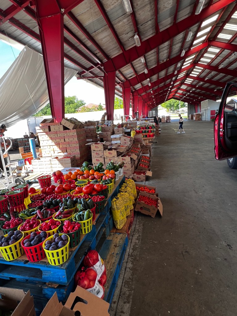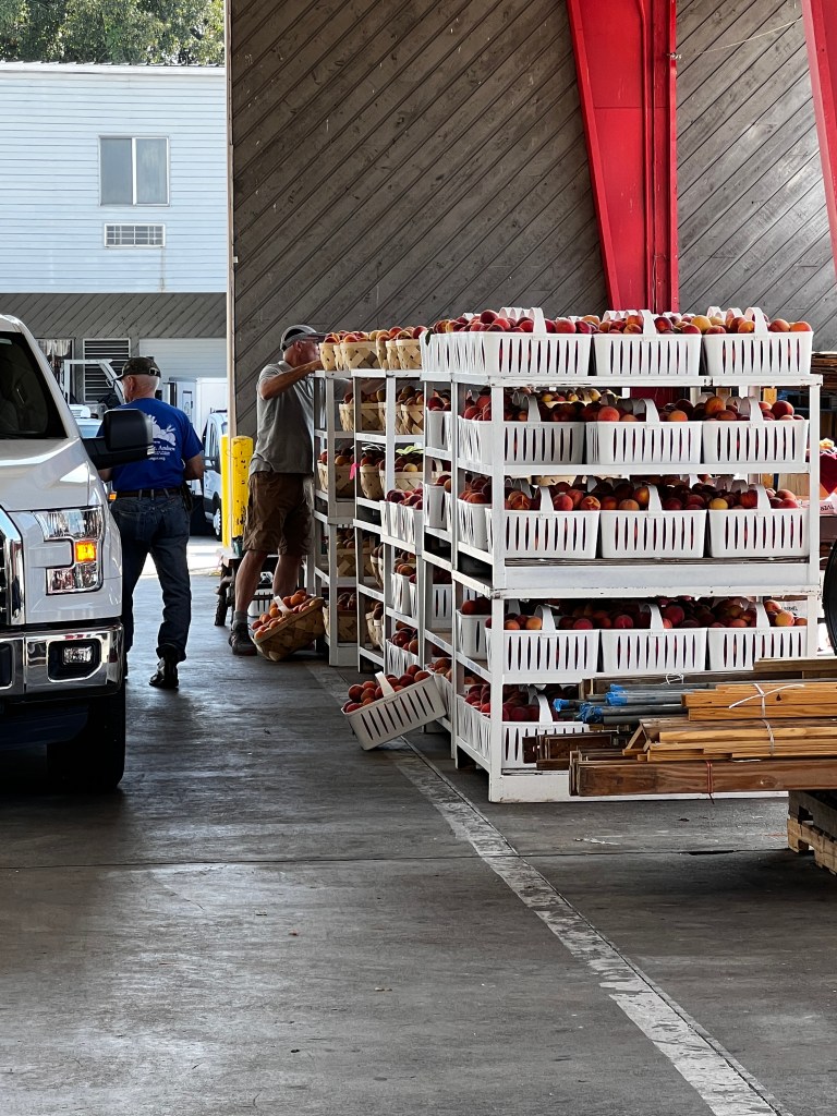 Weekly seasonal farmer’s markets as we know them in the North do exist here. There is a beautiful one every Saturday morning in downtown Asheville, as well as many other weekend markets in the area. But the WNC Farmer’s Market is not like that. It is a permanent daily market with dozens of farmers selling boxes stacked six foot high of fresh produce. There are two covered building you drive through plus a few more buildings on a lower level and a regular covered building including cheese mongers, honey and jams, cured meats, and crafts you can buy. Want tomatoes? You can buy a box of 20 for about $30. Want cucumbers? You better have a restaurant or a big family. You’ll get a dozen. David and I bought a monster basket of peaches for $23. And the basket was pretty! We offloaded most of those on our next stop.