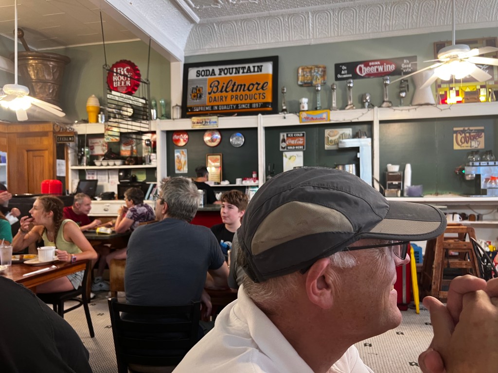 We had to change a lot of our summer plans. I felt terrible that we couldn’t spend the 10 days we scheduled in NH with my son Alex and his husband Ben. They were flexible though and came down to visit us! A weekend was not enough but we fit in a basic primer on Asheville. On Friday evening, we walked through the bookstore/wine bar, strolled through the vinyl record press/bar, and took a quick walk through the pinball museum all before hitting a rooftop restaurant for Cuban food. We couldn’t miss Asheville’s Sunshine Sammies ice cream sandwiches for dessert. On Saturday, we buzzed over to the new house. Alex and Ben got a quick tour of the house and property. We did walk around the pond. David counted 10 different varieties of dragonflies while talking with Alex.