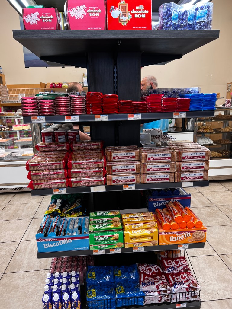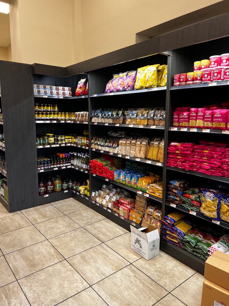 Right before the move, I stopped into a nearby industrial building and the fortunes smiled on me – because I found the most amazing importer of Greek food. And a Greek bakery! In 2019, my mom and I went on a fabulous food and wine tour of Northern Greece and I fell in love with it all. Most people go to the Islands, but really, if you get a chance, go to the mainland. So much history (Alexander the Great! His father, King Phillip! Preserved cities! Temples to Greek gods! Ancient Christian sites! The Ottomans! WWII! The Jews of Thessoloniki!) and beauty (there is skiing in these mountains! Of course, the water!) Anyway go. This small but completely stocked retail store associated with the rest of the Greek importer was a joy, a total find in Deer Park. Real Greek cheeses and ingredients. My mouth is watering thinking about it.