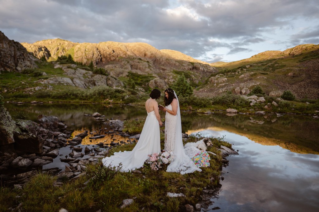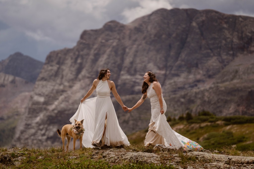 And more HAPPY HAPPY HAPPY – Rachel and Madison got their elopement photos back – at least the initial ones. So beautiful. They hiked up a mountain before dawn to take their wedding vows in private (except for the dogs and photographer). The sun rose on one of their adventures, this one with lifelong promises for many more to come.