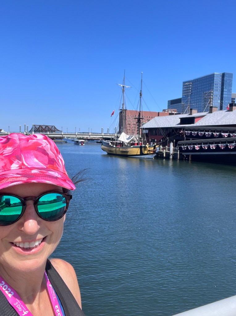 The second day of the walk, Linda and Brianna and I walked first through Brianna’s home turf. We walked right by the beach she takes her dogs for walks. We walked by her block and the Southie pub made famous in Good Will Hunting. Southie is much more gentrified than when the movie was made. Brianna was having moving out challenges. She had to be out by Wednesday but actually was leaving early Monday to visit grandparents in Sag Harbor. David and I planned to meet her there on the weekend for a wedding. The big hurdle was her classic Mustang which needed a lift to Long Island. She was working to get a car hauler from UHaul, ferry tickets from New London which required exact dimensions from UHaul and various other moving issues. Still she walked. So proud of my girl.