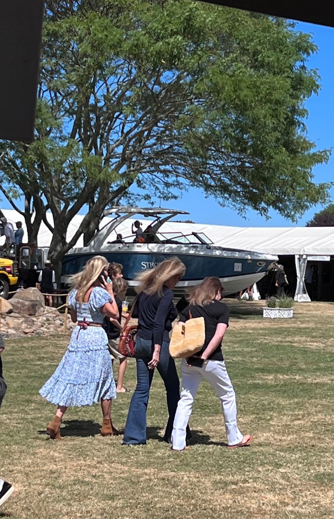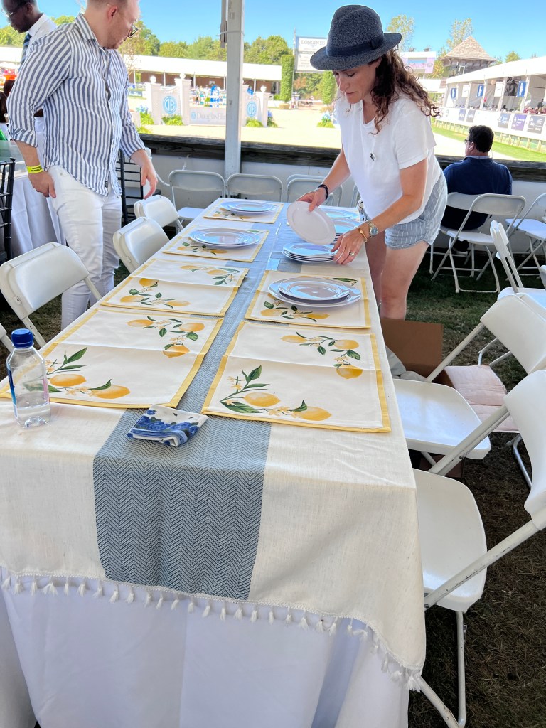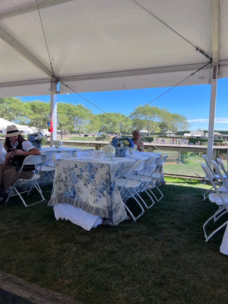 Afterwards Nancy and I made a quick (not really) jaunt to the Hampton Classic Horse Show. Her cousin had an extra ticket so we did some boutique shopping before watching some fabulous show jumping. People and companies sponsor tables next to the jumping ring – and they decorate them! And cater them. This is how the other half lives. Oh, and we saw Christie Brinkley.