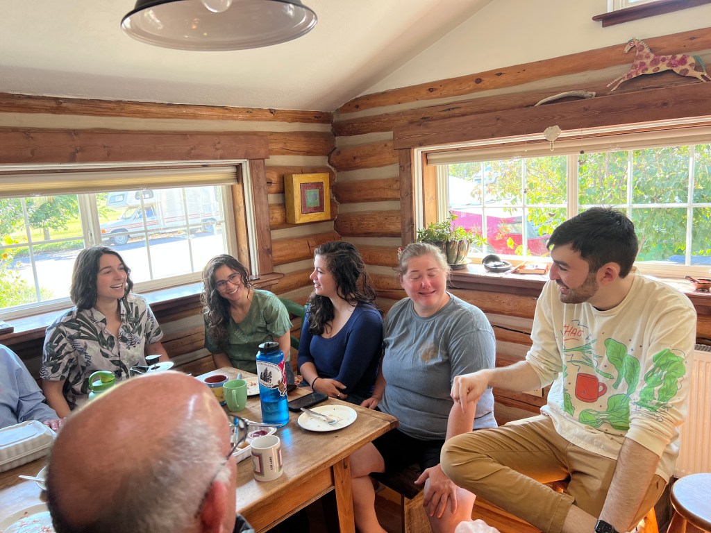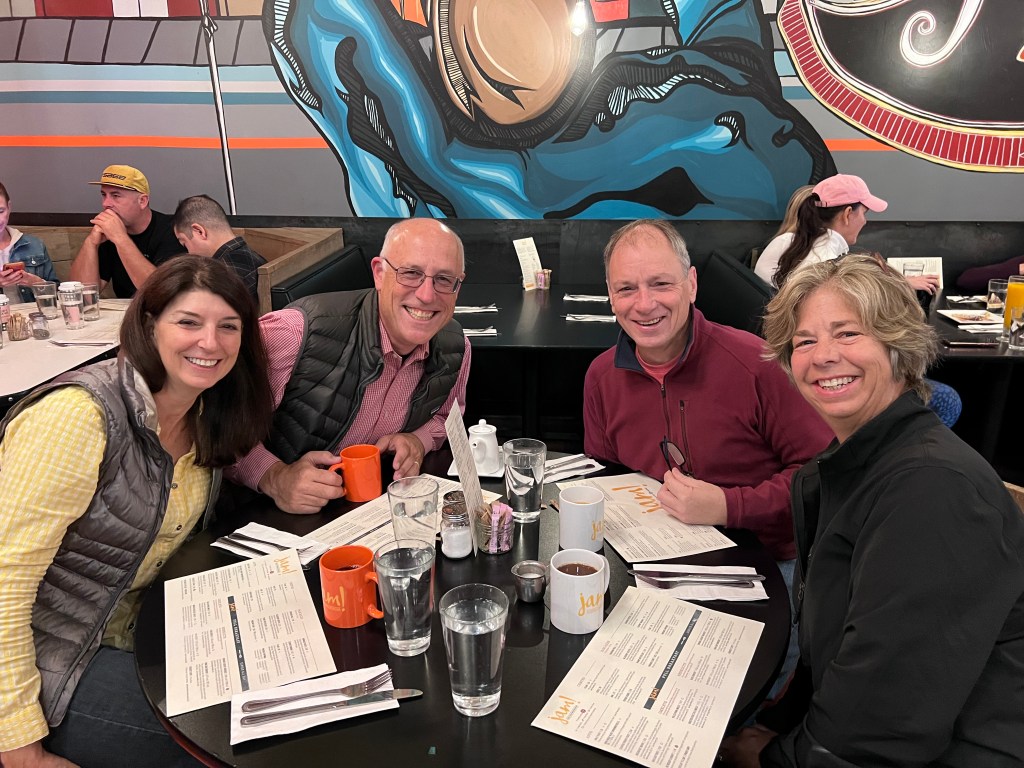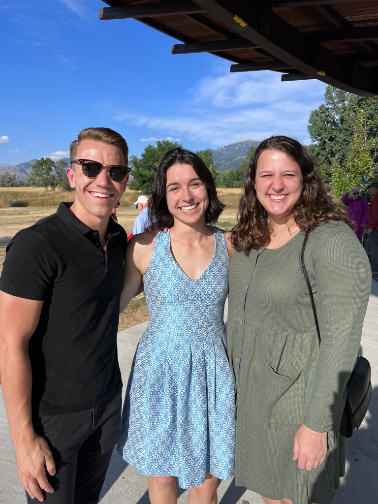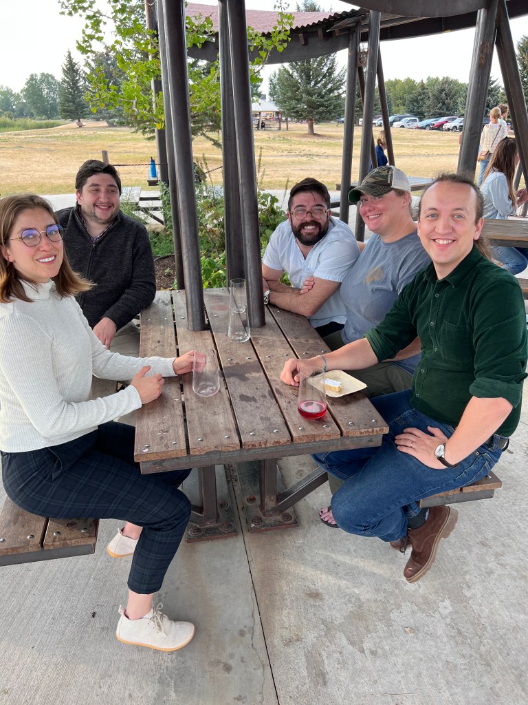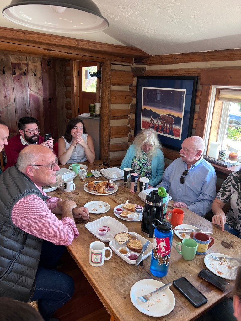 Saturday morning we got up a little early and we were able to have breakfast at one of Bozeman’s iconic morning spots, Jam! We then got some pastries at Wild Crumb, the bakery that always seems to have a line out the door, to deliver some baked goods to Rachel and Madison’s AirBnB. We got to have a little coffee with the siblings and the newlyweds’ friends. Afterwards we stuffed gift bags at their AirBnb. We then walked around town a little, exploring stores. Our team ended at the boot repair shop that had great skate (it’s a fish) skin wallets.