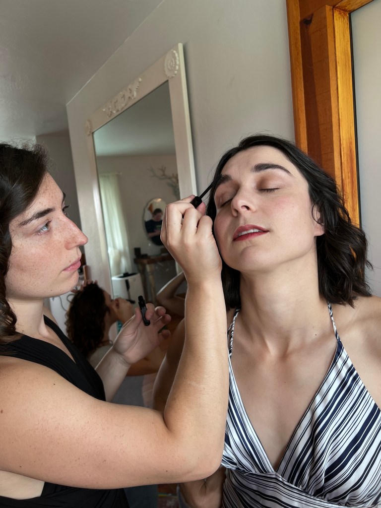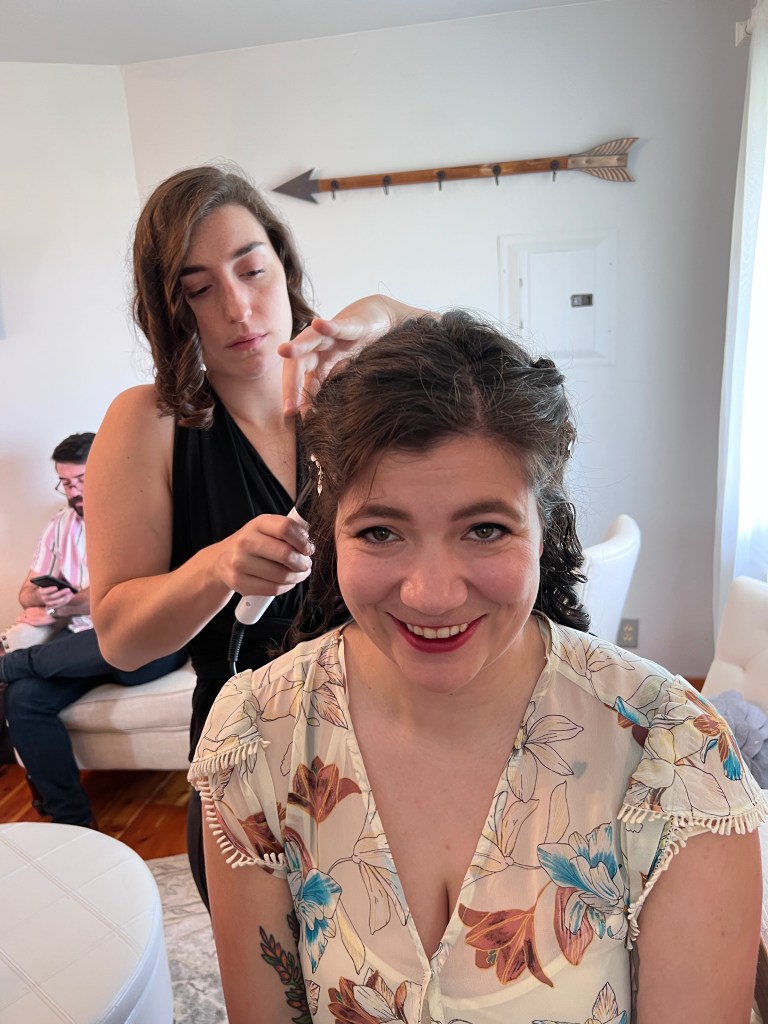 On Sunday, David and I woke up early to practice our speech. Which we then changed. And changed. And realized we had to go because I had to get to the venue early to participate in the pre-wedding hair and makeup prep and hangout. I actually did nothing to help.