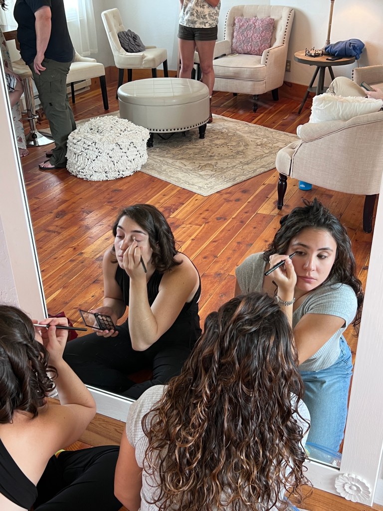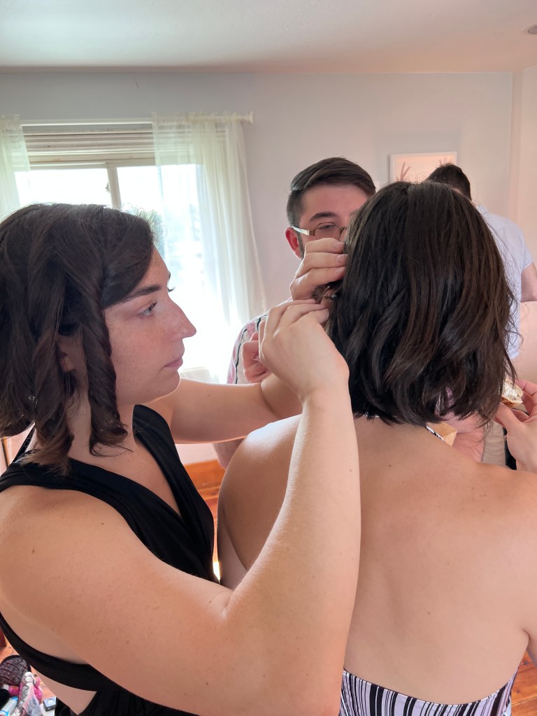 Brianna, on the other hand, did everything. She helped with hair, she helped with makeup, she got each of the brides into their dresses, and later she helped David with the slide show and getting the polaroid cameras ready for people to use and add photos to their guest book remarks, she helped with the photographer, she made everyone feel welcome from cousins to new family.