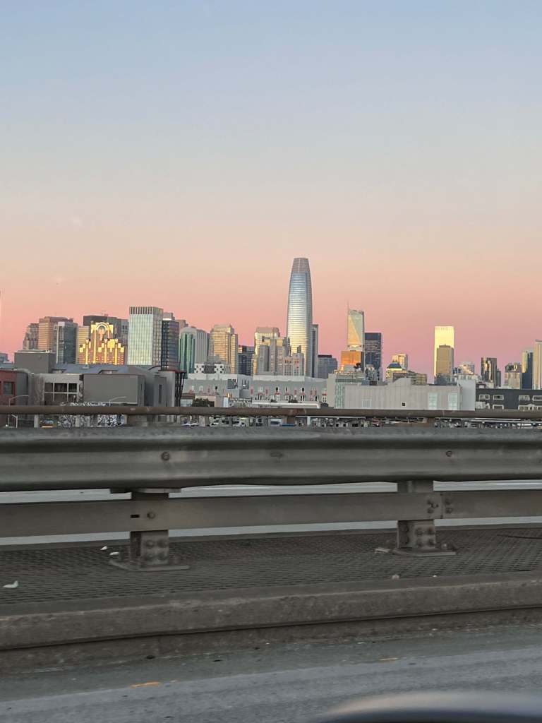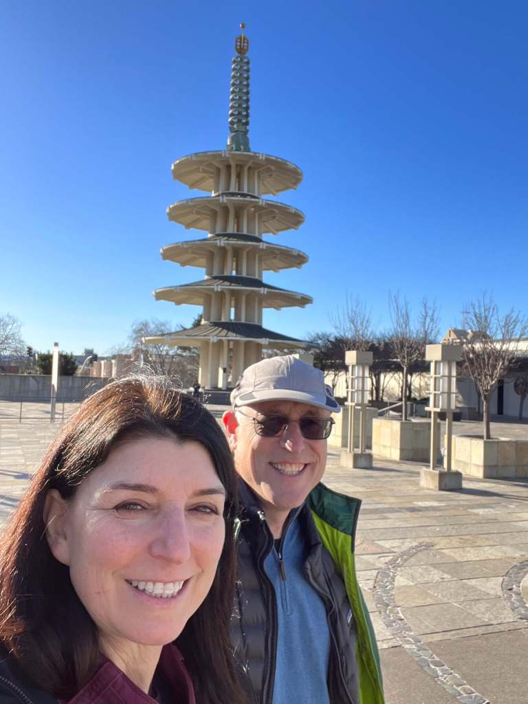 We rolled our luggage a couple of blocks through Japan Town to Kirsten and Sam’s apartment. Two-month old baby Eloise, one of the reasons for our visit, was ADORABLE. We drove to the bay to stroll the beach in Crissy Park. Turns out Golden Gate Bridge is still red. Recent wind storms created a lot of damage. Did I notice? Not really. I was catching up with Kirsten and Sam and BABY ELOISE. That cutie.