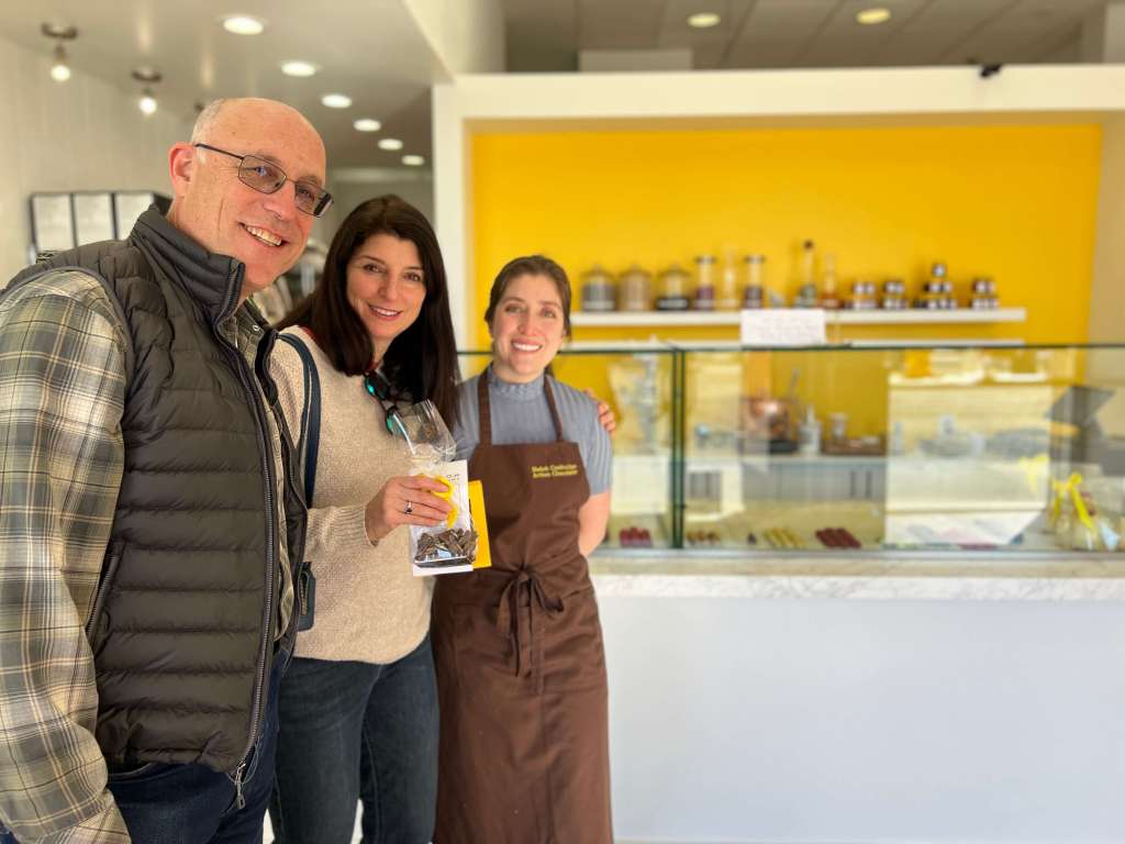 Saturday night, Linda and I drove in to SF to babysit Eloise for the night. First, we stopped to see my niece Nadine in her natural habitat, a super high end chocolate shop where she helps her friend and new business owner Shekoh. We had the most delictable sipping chocolate from a French recipe. If you can’t get to the store and you need an AMAZING gift, look at their website/Insta on ShekoConfections. The chocolates are outrageous and look like shiny marbles of perfection.
