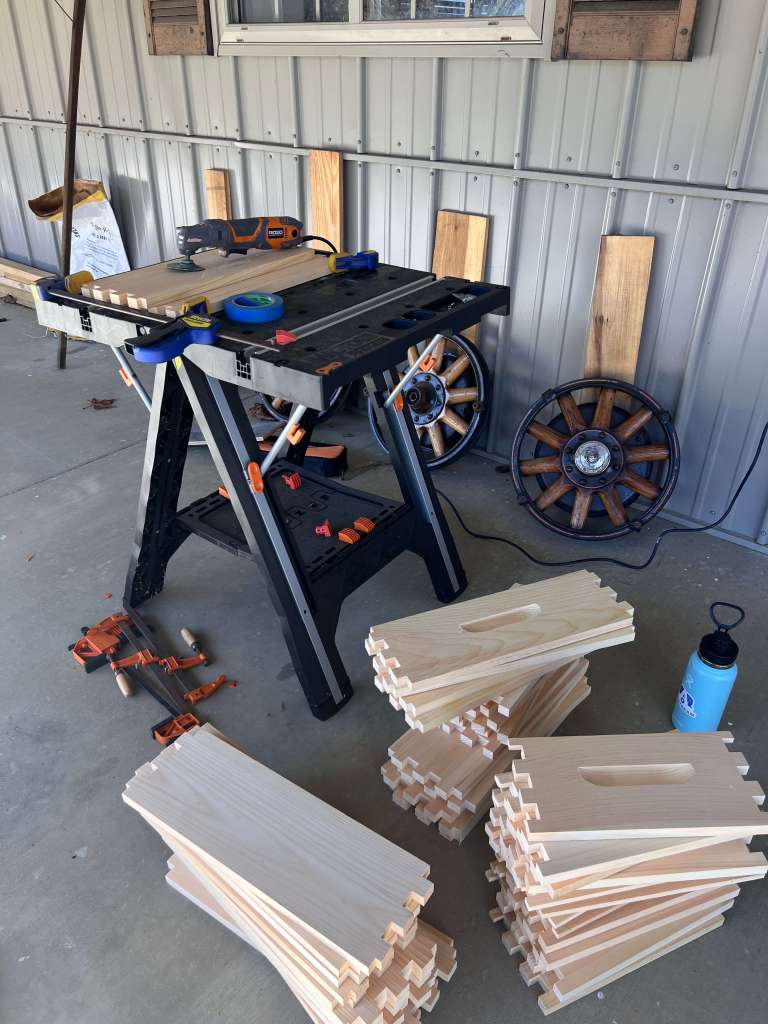 The current hives are fine, but I was hoping to expand a little. And I did I ever — as you’ll see. To meet my expanding apiary hopes and dreams, we purchased some new wooden parts for hives at the Bee Expo. You can buy them pre-assembled, which I’ve done in the past. This time, I thought I’d just buy the pieces and glue/screw them together myself. Not being a carpenter, I messed up a little. I didn’t realize you that the boxes don’t square themselves; you actually need to use a square or a string on the diagonals to make sure everything’s even. Don’t roll your eyes; you didn’t know that either. A majority are useable but the rest? Ummm… I will repurpose three into swarm boxes or something.