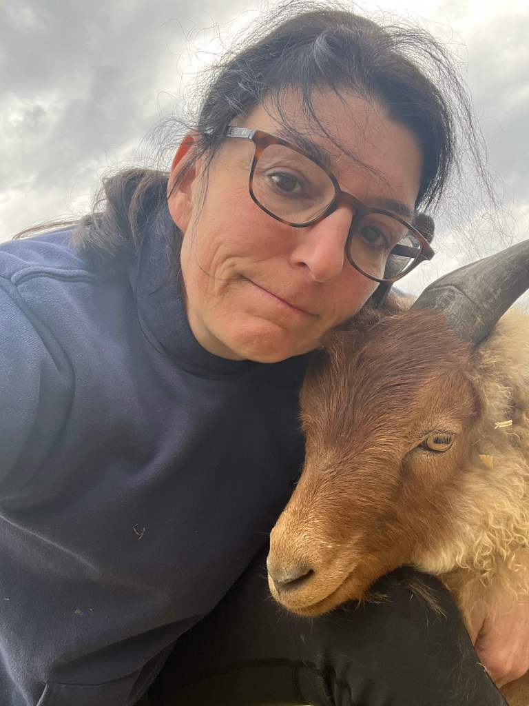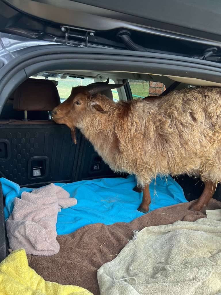 Finally, we got Phillip an appointment with a vet in Flat Rock. We lifted him into the back of the Outback. (Did you know a Subaru was a farm vehicle?) After checking in, we drove him to their back door. The vet came out and as soon as she saw Phillip’s leg, she started breaking it to me that he would not be long for this world. The wound was very dirty (hell, he had been lying in the chickens’ dust bath area!) and it was probably highly infected. Antibiotics might not work. Surgery for an amputation would mean anesthesia and even healthy goats die for no reason under anesthesia. And his quality of life would be much reduced as goats (unlike dogs or horses) get up from lying down using their back legs. The most humane option was to put him down. I made what I thought was a crazy request; would they shear him first? Maybe I could get enough fiber from him to make a hat? He definitely was the animal with the most personality of our entire flock. Sigh. RIP Phillip.