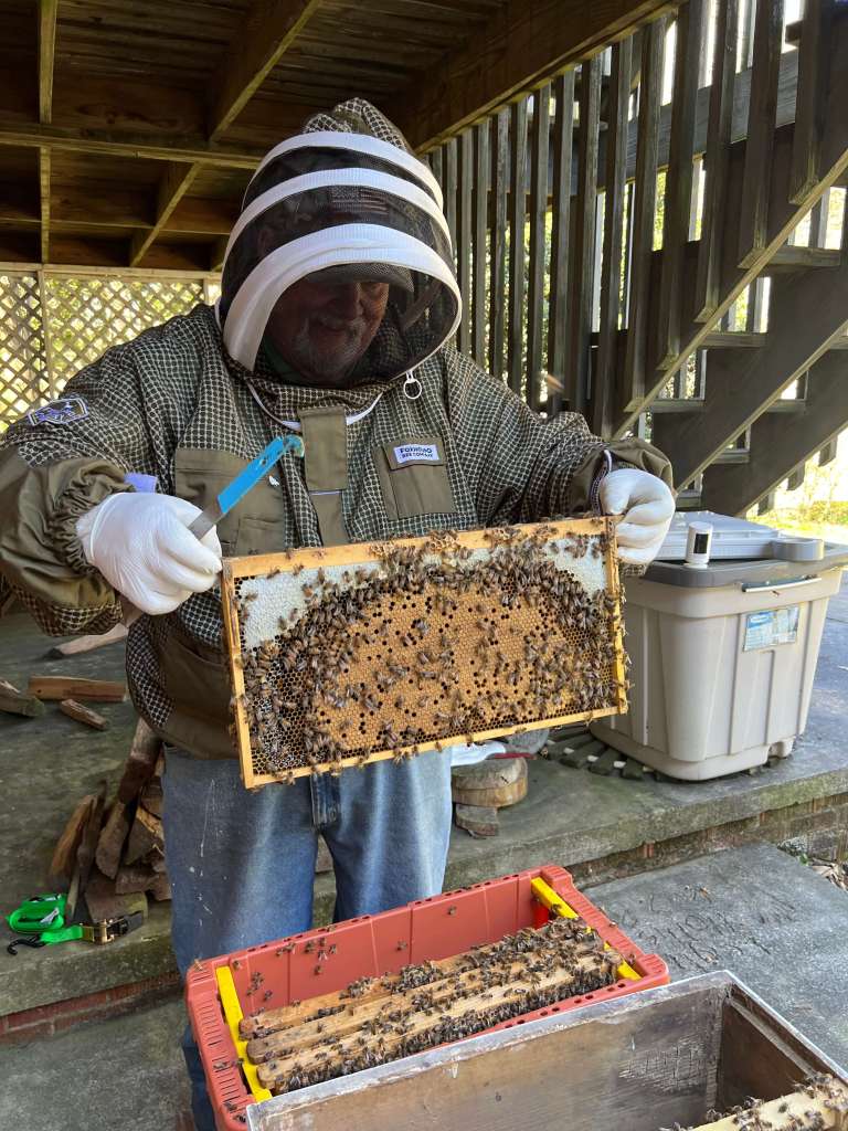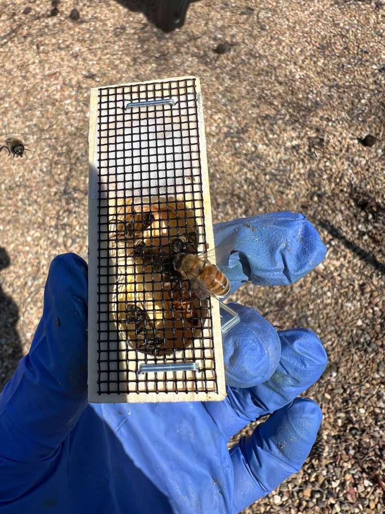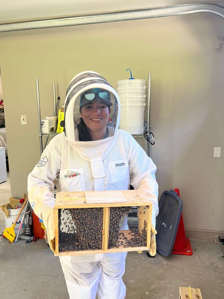 It’s something I learned about at the Bee Expo (see the last blog) from the famous and personable Dr. Marla Spivak. Propolis is a sticky substance bees use. They can plaster it to patch holes to keep out wind or envelop anything that shouldn’t be in the hive. For example, if a mouse enters the hive, many bees kill it by stinging/protecting the hive/losing their lives. Said mouse then gets covered with propolis so it doesn’t infect the hive and make it smell while decomposing. Pretty clever! Anyway, propolis turns out to be antibacterial, anti-fungal and overall supportive of bee health. If you can encourage bees to produce more (e.g. by roughing up the inside of the hive box) you may have heathier bees.
