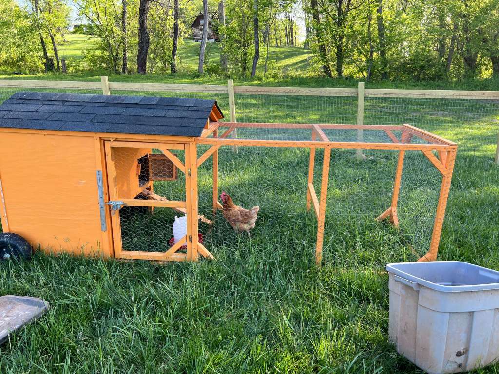 While taking the sheep from the pasture, David noticed lots of white feathers near the bottom of the chicken run. Why? Then he saw one of the chickens with her wing hanging. Ugh. What is it with our animals and their extremities? Some kind of predator scaled the fenced pasture and reached in to hurt our chickens. Not sure how or what. Now we have a motion sensor light and a camera installed. Soon we will put a short bit of electric fence around it.